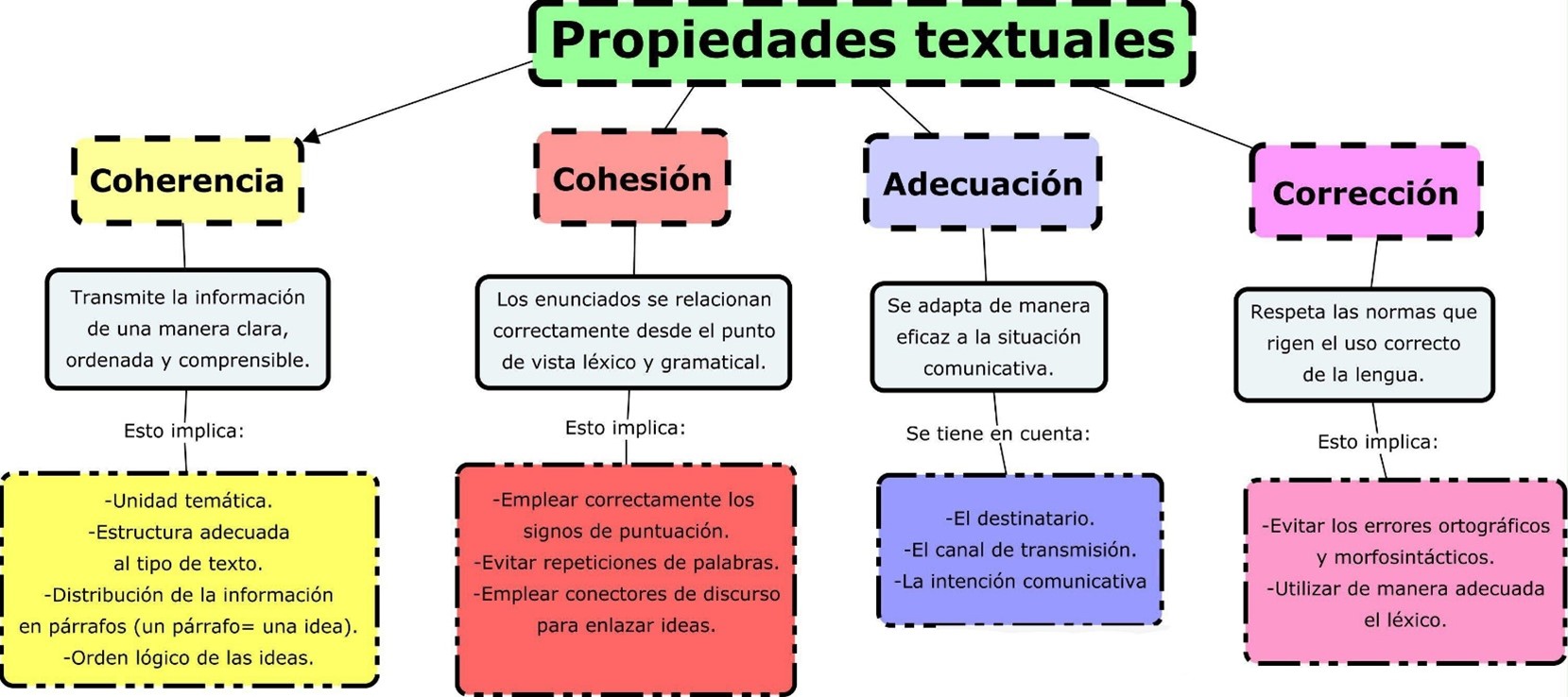 - Cohesión: Uso de elementos lingüísticos para conectar las partes del texto.